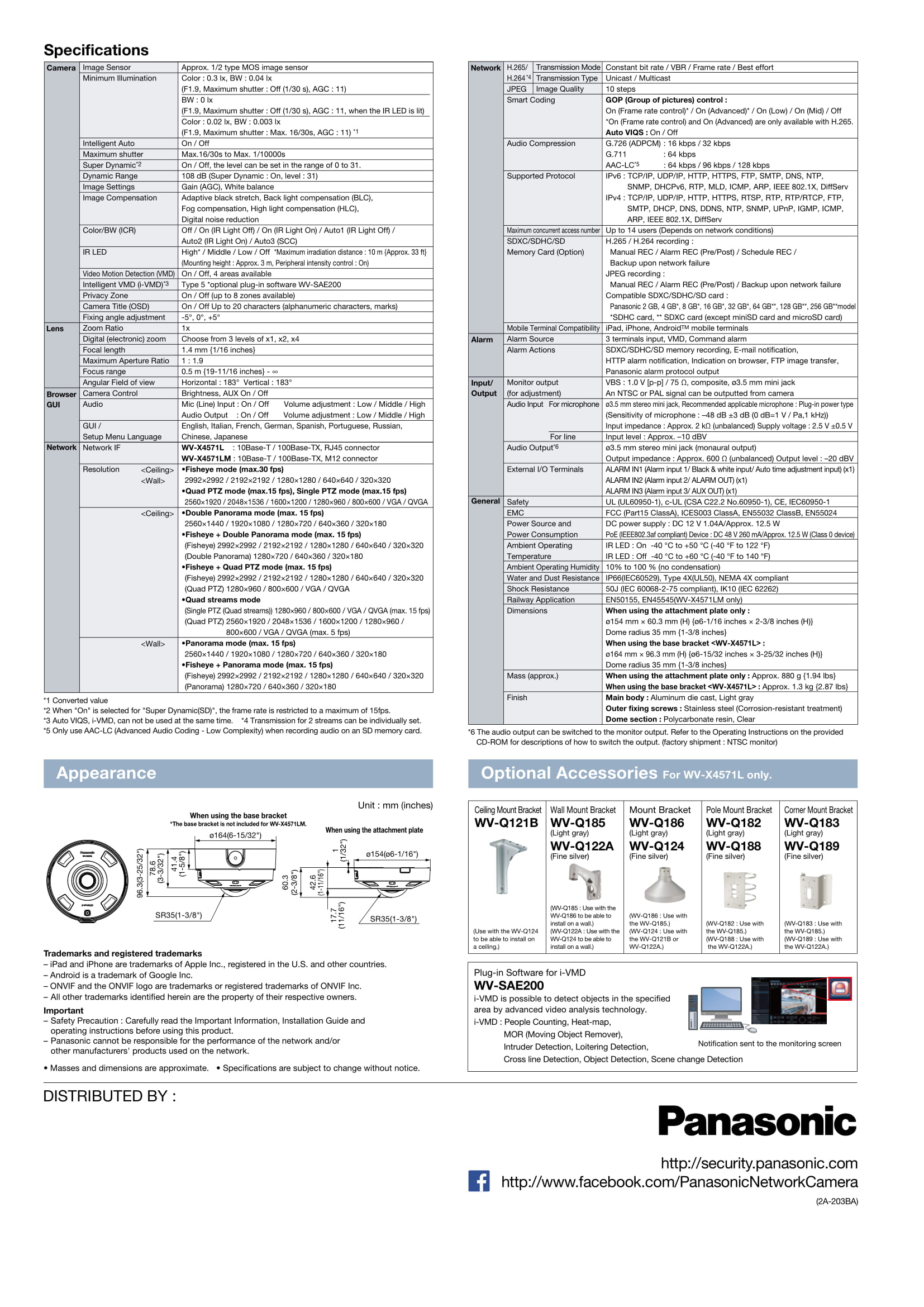 กล้องวงจรปิด Panasonic รุ่น WV-X4571L